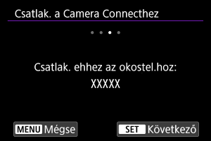 gomb megnyomása után érintse meg a Camera Connect kívánt funkcióját a(z) Wi-Fi-kapcsolat létesítéséhez, majd kezdje újra az 1. lépéstől.