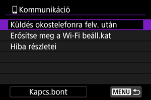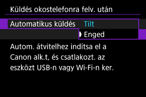 Felvételeit automatikusan is elküldheti okostelefonjára. A lépések végrehajtása előtt győződjön meg róla, hogy a fényképezőgép és az okostelefon Wi-Fi-kapcsolata megszakadt.