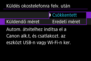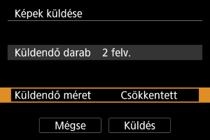 - Több kép küldése esetén küldés előtt igény szerint a megerősítést kérő képernyőn is módosíthatja a(z) [Küldendő méret] értéket.