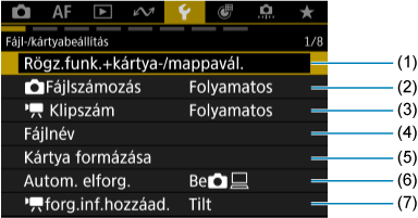 Fájl-/kártyabeállítás