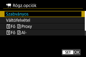 Rögz.opciók] beállítása [