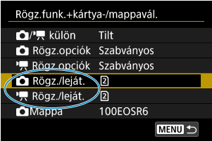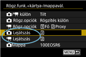 Rögz.opciók] beállítása [Szabványos]/[Váltófelvétel], válassza ki a felvételhez és lejátszáshoz használt kártyát.