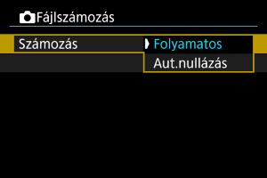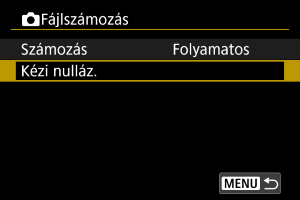 • Ha szeretné visszaállítani a fájlszámozást, válassza ki a(z) [Kézi nulláz.] lehetőséget ().