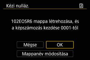 Amikor kézzel állítja vissza a fájlszámozást, automatikusan új mappa jön létre, és az abban a mappában mentésre kerülő képek fájlszámozása 0001-től indul.