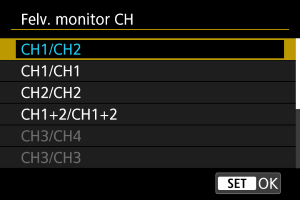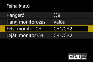 Válassza ki a(z) [Felv. monitor CH] vagy a(z) [Leját. monitor CH] lehetőséget.