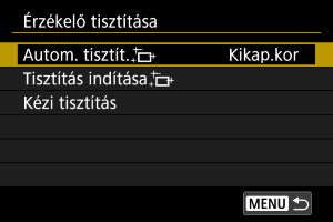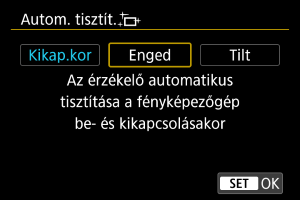 - Ha a(z) [Kikap.kor] vagy a(z) [Enged] lehetőségre van állítva, a készülék érzékelőtisztítást végez a képernyő kikapcsolásakor, az automatikus kikapcsolást is beleértve.