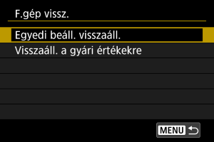 A fényképezőgép felvételkészítési funkcióival, valamint a menüfunkciókkal kapcsolatos beállítások visszaállíthatók az alapértelmezett értékekre.