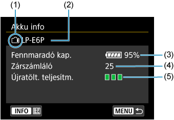 - Az Akkumulátorinformáció képernyő megjelenítése után nyomja meg a(z)