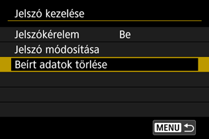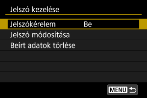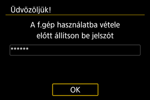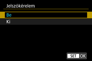 Kiválasztható, hogy bekapcsoláskor () jelszót kell-e megadni, vagy a fényképezőgép automatikus kikapcsolás után folytatja a működést.