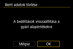 A jelszavak és a felvételhez és a menüfunkciókhoz tartozó beállítások visszaállíthatók az alapértelmezett értékekre.