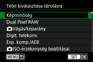 Válassza ki a(z) [Tételek kiválaszt. tárolásra] lehetőséget.