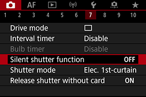Disables shutter release sounds, operating sounds, and firing and illumination of the flash and other light sources.