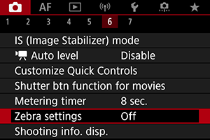 • Checking the zebra display level in advance is recommended when you will set [Zebra pattern].
