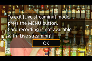 - It will take a moment before streaming begins in step 9. Do not operate the camera while the message is displayed.