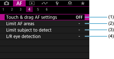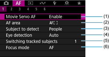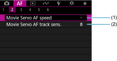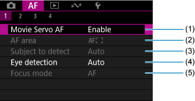 Tab Menus: AF (Movie Recording)