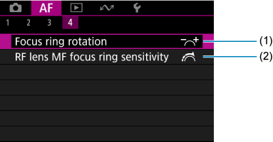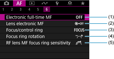 - When lenses without a focus mode switch are used, [Focus mode] is displayed on the [