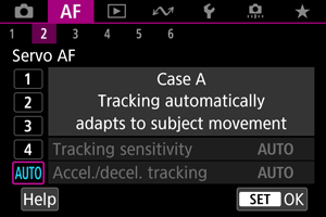 Shooting with Servo AF can be easily tailored to your subjects or shooting situations by selecting a Case * option. This feature is called the “AF Configuration Tool.”