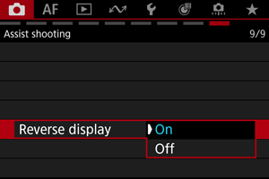 A mirror image can be displayed when you shoot with the screen rotated toward the subject (toward the front of the camera).