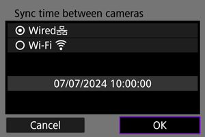 1. Select [Communication functions: Sync time between cameras] ().