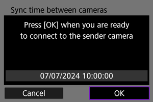 • To set the time on multiple receiver cameras, follow steps 1–3 on each receiver camera.