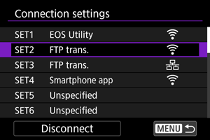 Selecting [Select from list] lists communication settings saved on the camera. Select the communication settings to use.