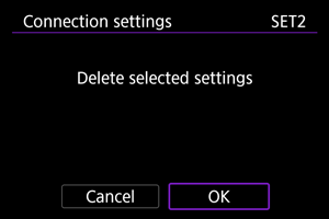 - Selecting [Clear selected] clears communication settings with registered connection settings. Select [OK] on the confirmation screen.