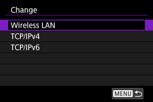 - Selecting [Wireless LAN] enables you to change the target SSID, for example.