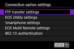 You can add, change, or delete communication and function settings saved on the camera. You can also configure settings that are not set using the connection wizard, such as a setting that determines what happens if files with the same name as existing files are sent to the FTP server.