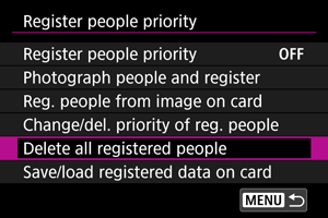 1. Select [Delete all registered people].