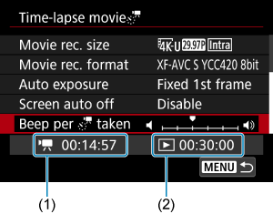 - Even if the time-lapse movie's playback time is less than 1 sec., a movie file will still be created. The playback time in this case is indicated as [00'00"].