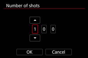 - Suitable [Focus increment] settings vary by subject. An unsuitable [Focus increment] setting may cause unevenness in composite images, or shooting may take more time because more shots are taken. Take some test shots to decide a suitable [Focus increment] setting.