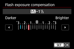 - If flash exposure compensation is set with the Speedlite, you cannot set the flash exposure compensation with the camera. If it is set with both the camera and Speedlite, the Speedlite's setting overrides the camera's.
