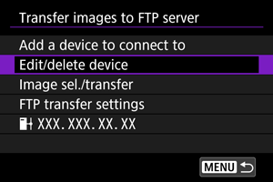 Before editing or deleting connection settings for other devices, end the Wi-Fi connection. This section covers items not described in Configuring FTP Server Connection Settings.