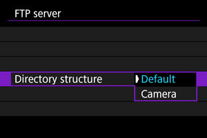 Automatically creates a folder structure matching that of the camera's (such as A/DCIM/100EOSR6) in the server's root folder for image storage. If you have created a subfolder in the root folder by changing the [Target folder] setting, a folder structure such as A/DCIM/100EOSR6 is automatically created in that folder for image storage.