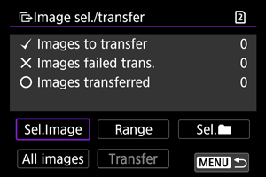 From the [Image sel./transfer] screen, you can select multiple images and transfer them all at once.