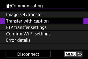 - Other images cannot be selected from the [Transfer with caption] screen. To select another image for transfer with a caption, view that image before following these steps.