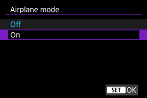 1. Select [Communication functions: Airplane mode] ().