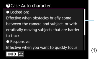button. Press it again to exit Help display. To scroll the screen when a scrollbar (1) appears on the right, turn the