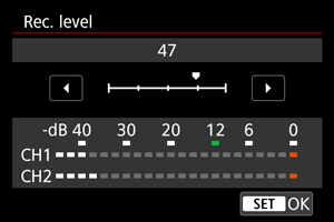 You can adjust the sound-recording level as needed. Adjust the level in [Rec. level].