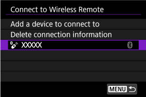 Connection settings for devices you have connected to via Wi-Fi or Bluetooth are retained on the camera. You can use these settings to reconnect to the same device.
