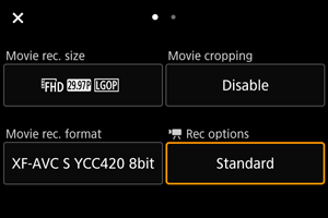 As in still photo shooting, press the Q (Quick Control) button to access the Quick Control screen. Each press of the Q (Quick Control) button switches between screens if you have selected ([Check]) both [Display 1] and [Display 2] in [Shooting: Quick Ctrl screen] (), but only the selected screen is displayed if one is selected ([Check]).