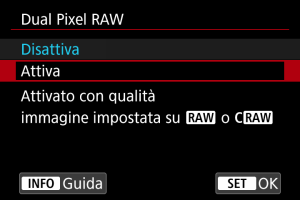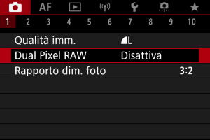 con questa funzione abilitata, si ottengono immagini Dual Pixel RAW speciali contenenti informazioni dual pixel provenienti dal sensore immagine. Questo processo viene definito Scatto Dual Pixel RAW.