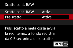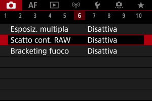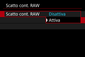 : Scatto cont. RAW] ritorna a [Disattiva] quando l'interruttore di accensione viene portato su