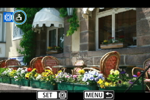 • Guardando la fotocamera e l'icona Orientamento delle immagini in alto a sinistra sullo schermo, premere il pulsante Quick Control/Impostazione per specificare il verso corretto. A ogni pressione del pulsante Quick Control/Impostazione le informazioni sull'orientamento del filmato vengono modificate come segue: [Orientamento dei filmati] → [Orientamento dei filmati sinistra] → [Orientamento dei filmati destra].
