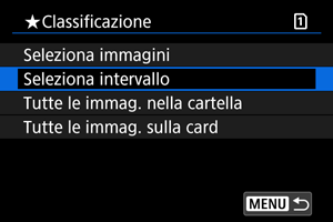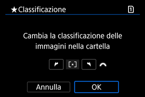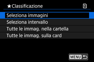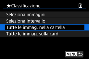 : Classificazione], quando si seleziona [Tutte le immag. nella cartella] o [Tutte le immag. sulla card], tutte le immagini nella cartella o sulla scheda vengono classificate.