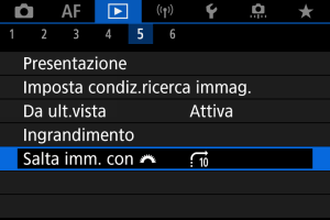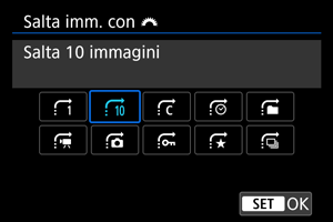 - Con l'impostazione [Salta il numero specificato di immagini] è possibile ruotare la ghiera