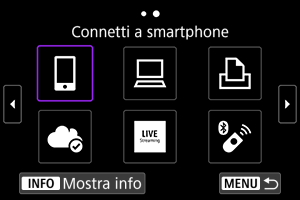 È possibile verificare i dettagli degli errori e l'indirizzo MAC della fotocamera.