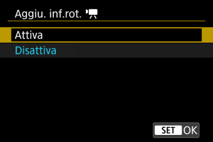 Per i filmati registrati mantenendo la fotocamera in verticale, è possibile aggiungere automaticamente informazioni sull'orientamento per consentire la riproduzione nello stesso orientamento su smartphone o altri dispositivi.
