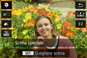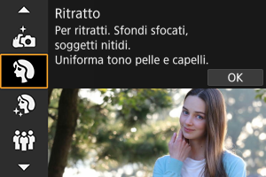 La fotocamera sceglie automaticamente le impostazioni più adatte quando si seleziona una modalità di scatto per un soggetto o una scena.