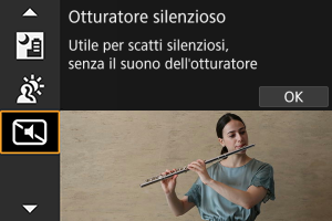 Laddove è necessario mantenere il silenzio, è possibile scattare senza bip o suono di rilascio dell'otturatore.